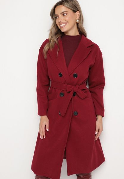 Bordowy Płaszcz Dwurzędowy Wiązany Vepha