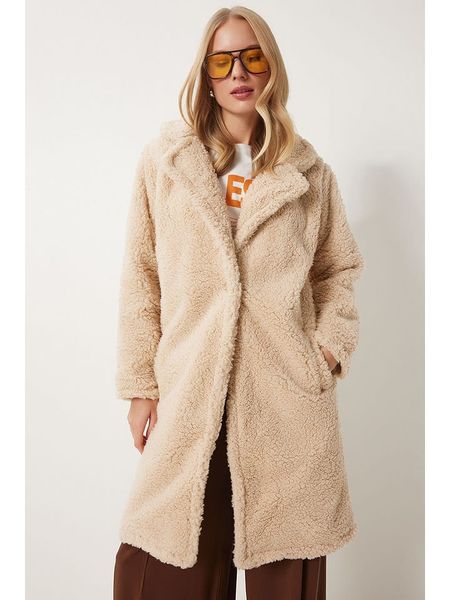 Happiness Istanbul Płaszcz pluszowy w kolorze beżowym rozmiar: 38