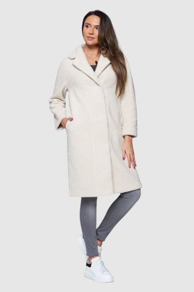 HETREGO Dwustronny płaszcz damski ecru Shannon, Rozmiar 38 EU – 42 IT