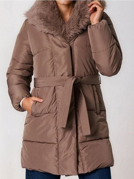 Sinsay – Pikowany płaszcz z futerkiem – fioletowy –
