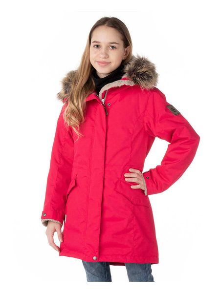 – wodoszczelność: do 10 000 mm słupa wody- kaptur: tak- kołnierz: stójka- zapięcie: suwak- kieszenie z patką: 2- dodatkowa listwa osłaniająca: tak- wstawka ze sztucznego futerka: tak- odblaskowe detale- look: jednokolorowy