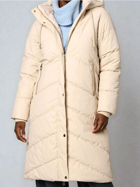 Sinsay – Pikowany płaszcz z kapturem – kremowy –