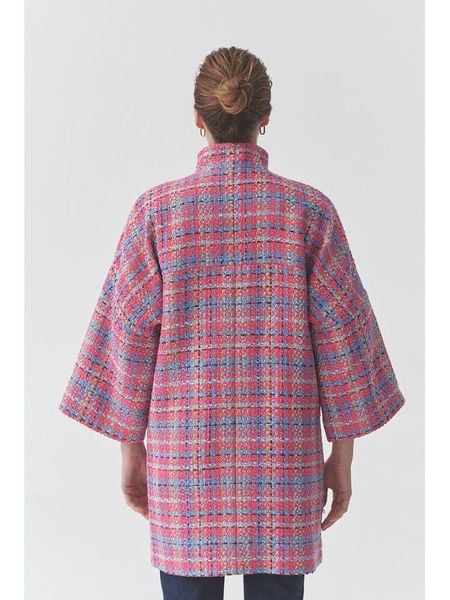 – kołnierz: stójka- zapięcie: listwa guzikowa- długość rękawa: 3/4- kieszenie: wpuszczane- detale: nakładane rękawki- krój: oversized- wzór: kratka