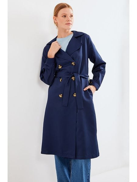 – kołnierzyk: z klapami- zapięcie: dwurzędowa listwa guzikowa- zdejmowany pasek: tkanina- wpuszczane kieszenie: 2- krój: prosty- look: jednokolorowy