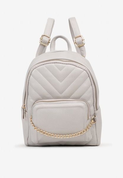 Jasnoszary Plecak Ozdobiony Łańcuszkiem i Pikowaniem Kolaggia