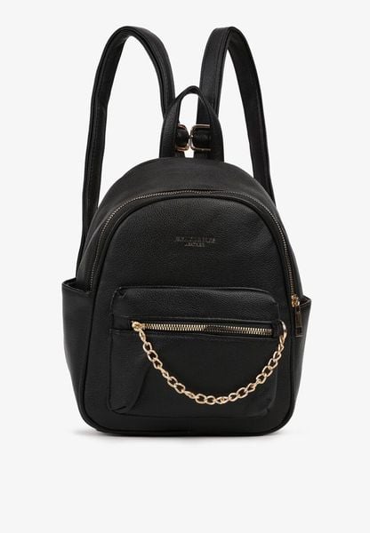 Czarny Plecak na Regulowanych Szelkach z Ozdobnym Łańcuszkiem Gleda