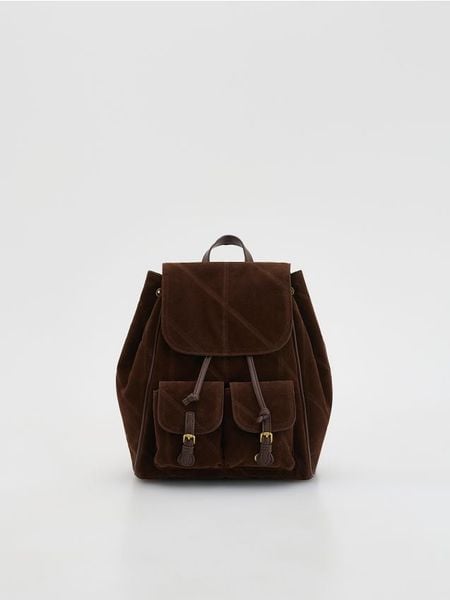 Plecak z imitacji zamszu – brązowy