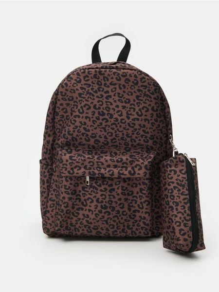 Sinsay – Plecak z piórnikiem w panterkę – brązowy –