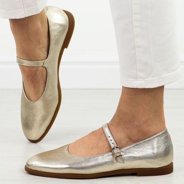 Złote skórzane Polskie półbuty damskie Deoni D616