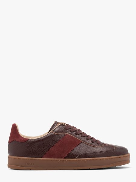 Bordowe półbuty sportowe na beżowym spodzie z linii RKO. Model wykonany ze skóry licowej oraz skóry welurowej. Podeszwa płaska o grubości 2,5 cm. Podszewka i wyściółka skórzana. Nosek okrągły. W tym modelu obuwia pod wyściółką znajduje się pianka amortyzująca z węglem aktywnym. Nadaje to jej właściwości silnie antybakteryjne i przeciwgrzybicze. Pianka jest perforowana, dzięki czemu […]