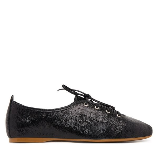 Czarne Półbuty na Płaskiej Podeszwie z Cholewką z Lakierowanej Ekoskóry i Sprzączką Elirva
