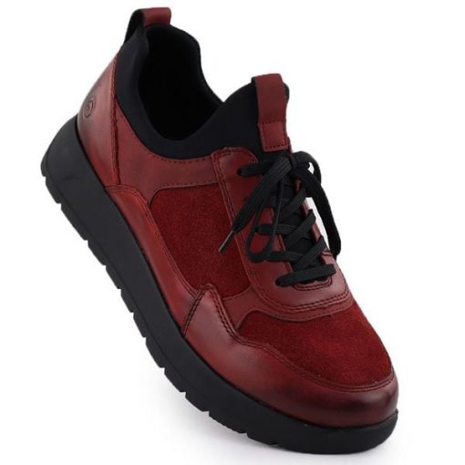 Skórzane półbuty damskie na platformie czerwone Remonte Rieker D2V00-35