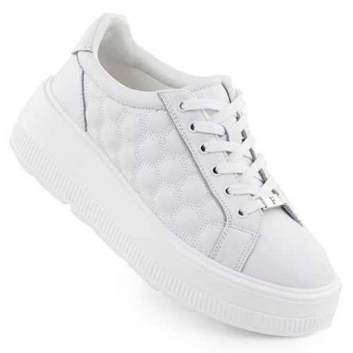 Skórzane półbuty damskie pikowane sneakersy na platformie białe Filippo DP7285