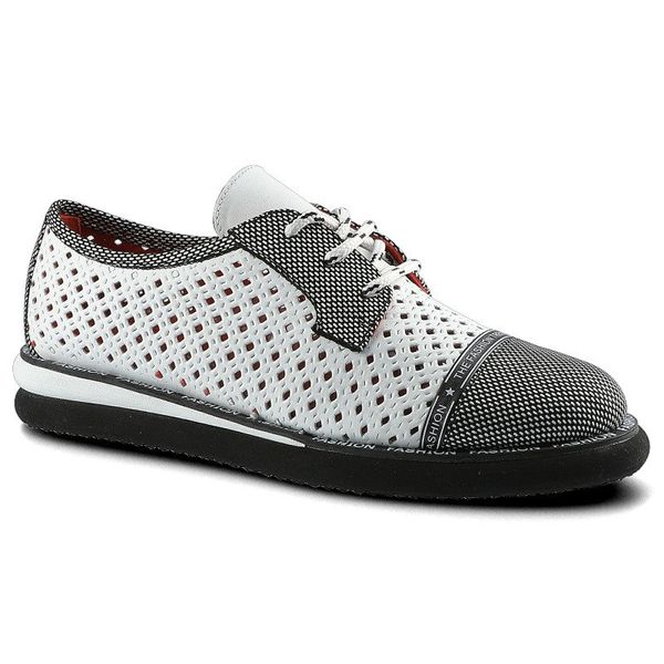 Półbuty damskie Lanqier, wykonane z materiału o otwartej ażurowej strukturze z kontrastowymi wzmocnieniami z klasycznym sznurowaniem, białe, 46C2339