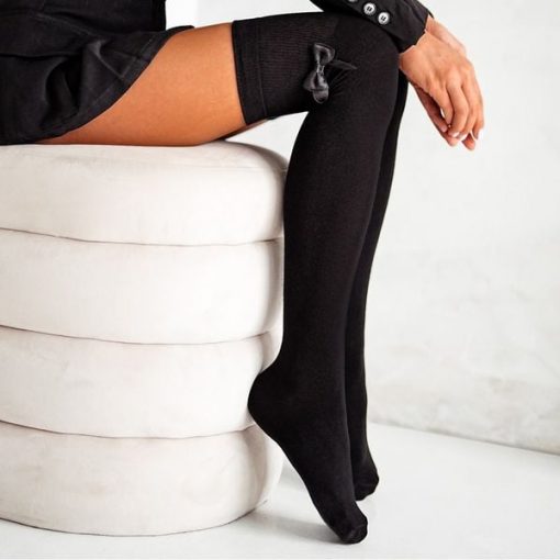 Zakolanówki bawełniane z kokardką 229 bk/bk