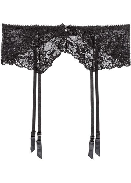 „Pas do pończoch, w którym oczarujesz swojego ukochanego. Uszyty z prześwitującej koronki, z paskami do podtrzymywania pończoch i ozdobnym połyskującym kamieniem. Świetny w komplecie z biustonoszem z głęboko wyciętymi miseczkami i stringami „”ouvert””.”