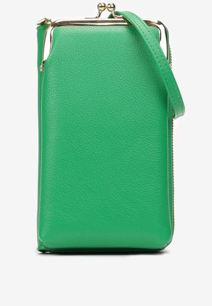 Zielony Portfel Mini Torebka z Ozdobną Portmonetką i Cienkim Paskiem Yathika