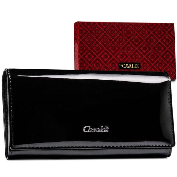Duży, czarny portfel damski z lakierowanej skóry naturalnej PX24-FO-JMP 4U Cavaldi