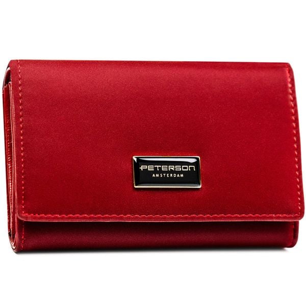 Czerwony, duży portfel damski zamykany na zatrzask, wykonany ze skóry naturalnej i ekologicznej PTN PS112-HNL Peterson