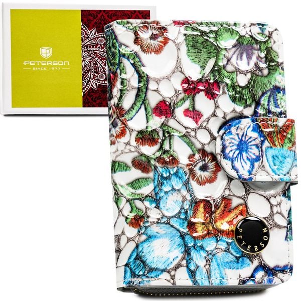 Wielokolorowy, pionowy portfel damski ze skóry naturalnej zamykany zatrzaskiem i suwakiem PTN PH31-LFL Peterson
