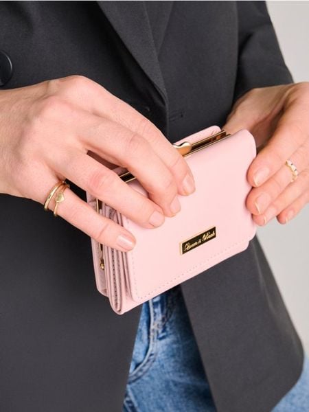 Sinsay – Portfel – różowy – zdobiony złotymi detalami, w tym zapięcia w kształcie serc,wiele przegródek na karty,kieszonka na monety,kompaktowy rozmiar