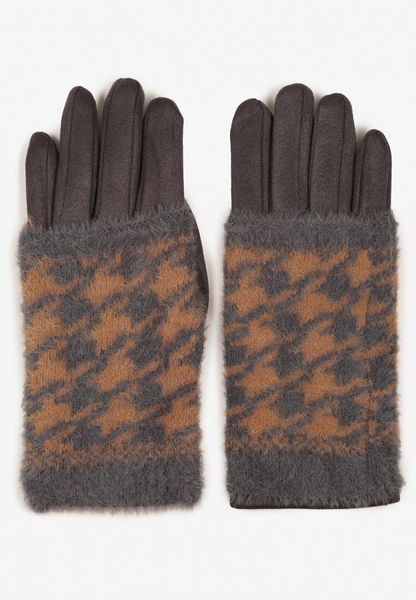 Ciemnoszare Welurowe Rękawiczki Zdobione Dzianinową Nakładką Laviti