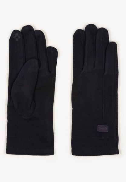 Granatowe Rękawiczki Zimowe z Bawełną Ozdobione Aplikacją Gralemi