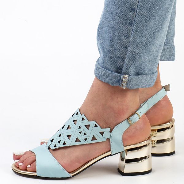 Niebieskie skórzane sandały damskie:są pełnowartościowe w I gatunkusą wyprodukowane w Polsce według surowych norm jakościcholewka jest wykonana ze skóry naturalnej, bardzo miękkiej najwyższej jakościsą starannie wykonane i odznaczają się wysoką trwałościąobcas: 5.5 cm, cały obcas: 6.3 cmobcas jest jednolicie złoty Kolor: Niebieski GWARANCJA na 12 miesięcy