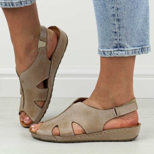 Skórzane Polskie sandały damskie Deoni D508 Cappuccino