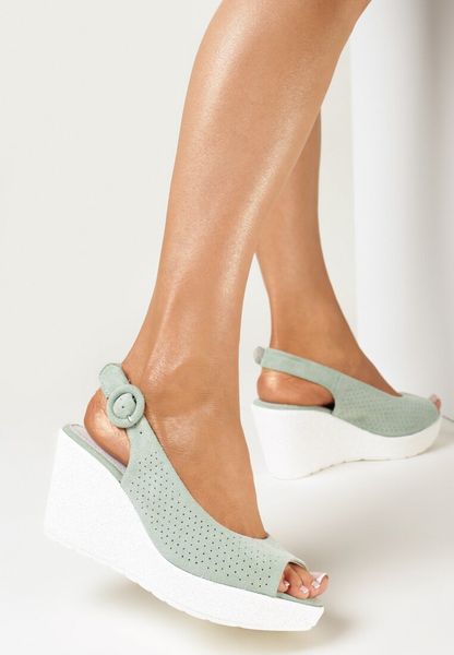 Jasnozielone Sandały na Koturnie ze Sprzączką i Skórzaną Wkładką Chera