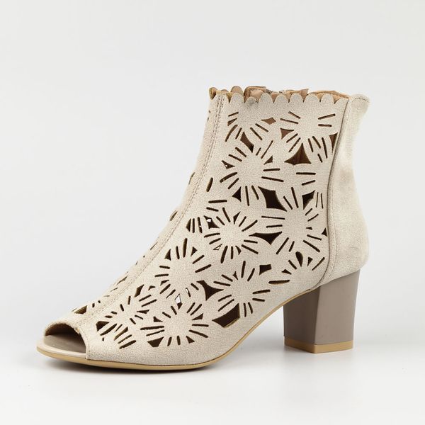 Beżowe sandały damskie na obcasie z zakrytą piętą M.Daszyński 1954-10