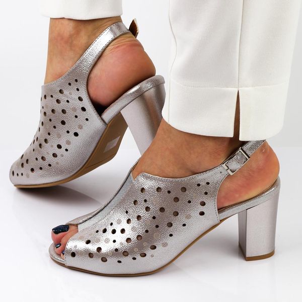 Srebrne ażurowe sandały damskie na słupku M.Daszyński Sa107-38