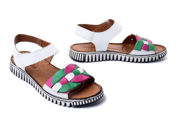 Sandały damskie. Naturalna skóra. Miękka, skórzana, częściowo perforowana, masująca wkładka. Zapięcie na rzep. Podeszwa PU.