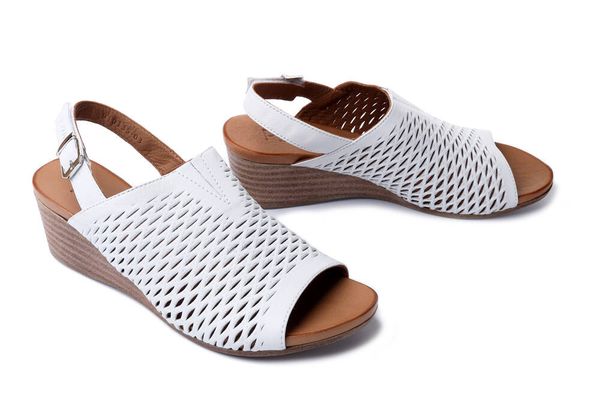 Sandały damskie. Naturalna skóra. Miękka, skórzana wkładka. Zapięcie na klamerkę. Wygodny koturn, podeszwa TR.