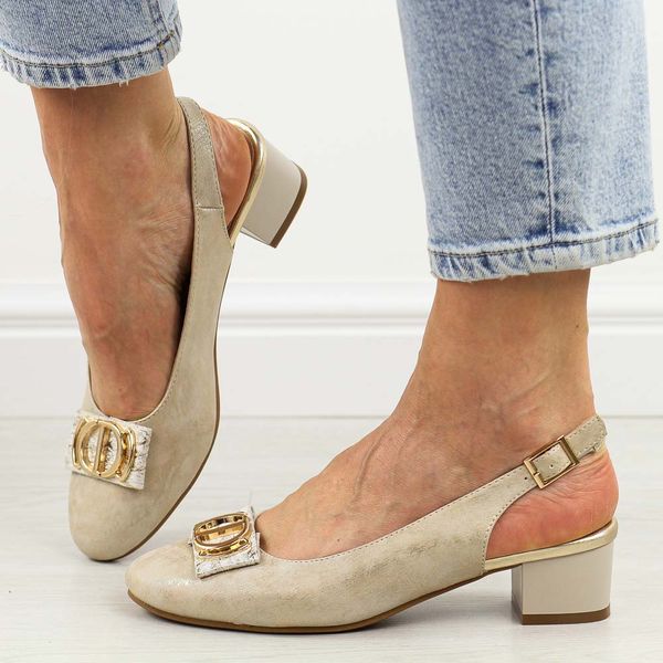 Złote sandały damskie na obcasie M.Daszyński Sa210-7