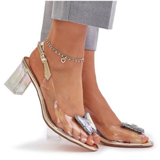 S.Barski Transparentne Sandały Z Motylem Na Słupku D&A MR42-326 Złote złoty