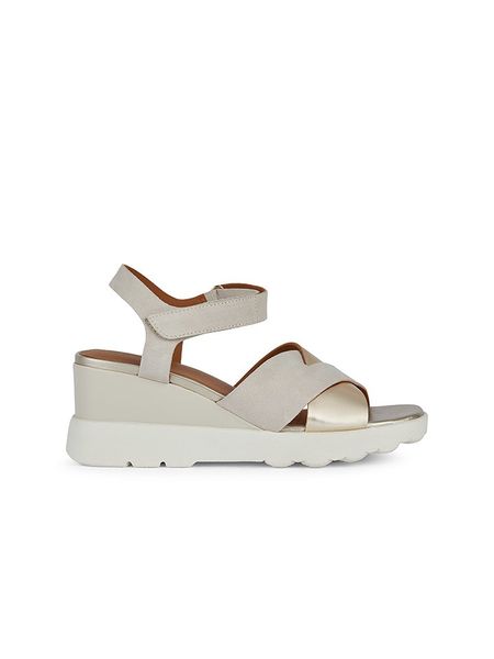 Geox Skórzane sandały „Spherica EC6” w kolorze srebrno-białym na koturnie rozmiar: 39