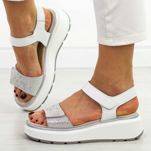 Biało srebrne skórzane sandały damskie na platformieto idealny wybór na wiosnę i lato dla kobiet ceniących wygodę oraz elegancki wygląd. Cholewka wykonana z wysokiej jakości skóry naturalnej zapewnia trwałość i komfort noszenia. Model wyposażony jest w dwa regulowane rzepy, które umożliwiają idealne dopasowanie do stopy, co gwarantuje wygodę przez cały dzień. Wkładka wewnętrzna z miękkiej skóry […]