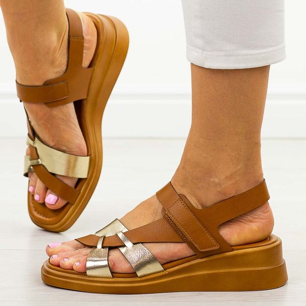 Brązowe sandały damskie na koturnie M.Daszyński Sa266-8