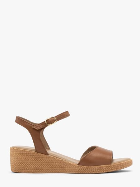 Jasnobrązowe sandały damskie na niskiej koturnie