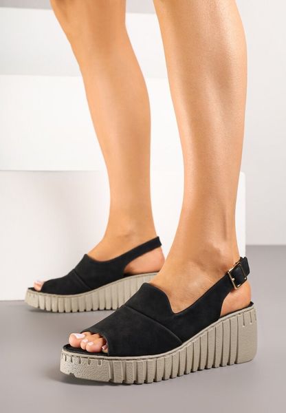 Czarne Sandały Vices na Koturnie z Tłoczeniem Realivra