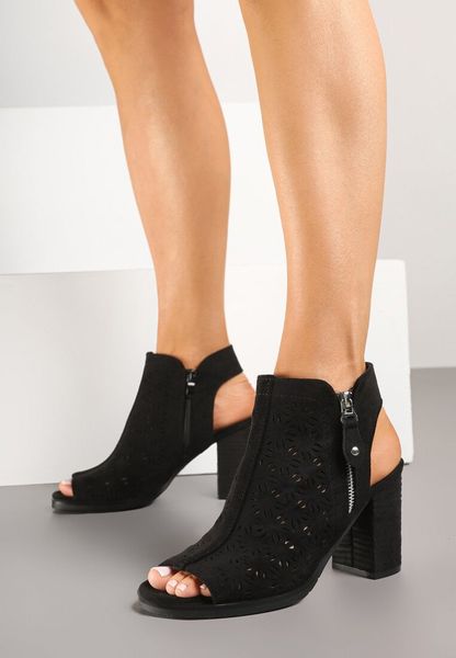Czarne Sandały Botki Peep Toe na Obcasie z Ażurową Cholewką Julliane