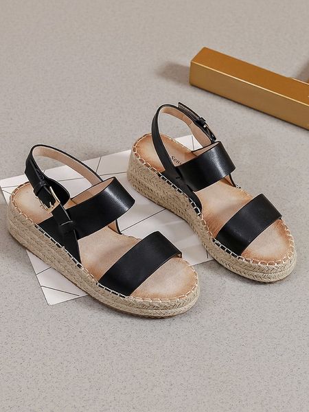 – zapięcie: sprzączka- noski: otwarte- obcas: koturny z platformą z przodu- podeszwa: antypoślizgowa