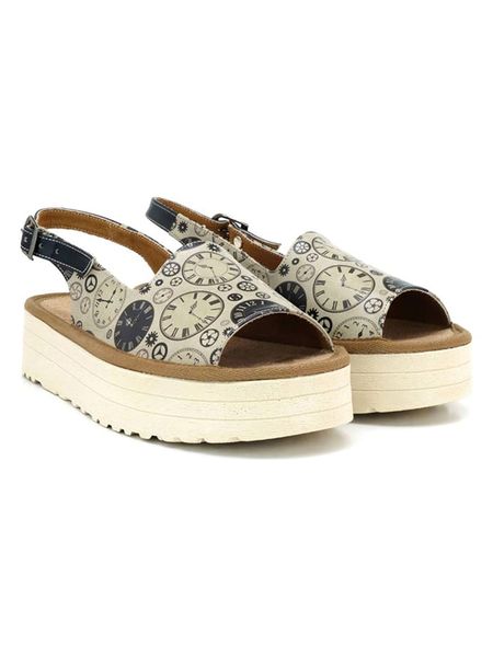 – zapięcie: sprzączka- noski: otwarte- powierzchnia: wzorzysta- forma obcasa: platforma- podeszwa: antypoślizgowa