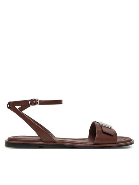 Calvin Klein Sandały Flat Sandal W/Ck Hw – Lth HW0HW02367 Brązowy