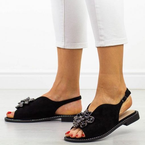 Czarne płaskie sandały damskie S.Barski 001