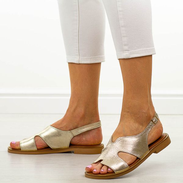 Złote C skórzane Polskie sandały damskie Deoni D10