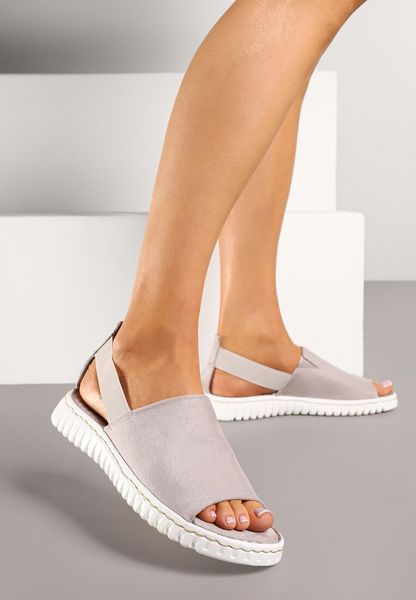 Szare Sandały Vices z Imitacji Zamszu z Elastycznym Paskiem Folalise