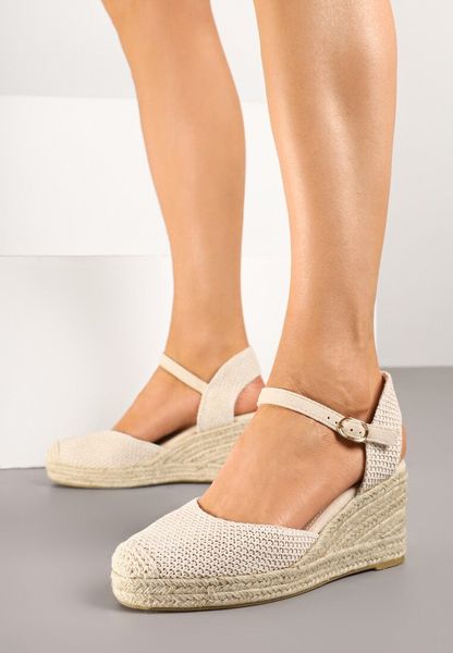 Beżowe Sandały w Stylu Espadryli na Plecionym Koturnie Reflara