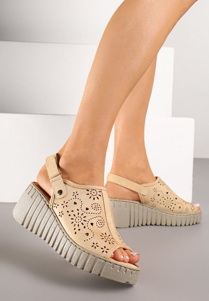 Ciemnobeżowe Sandały Vices na Koturnie z Ażurową Cholewką Sarandria